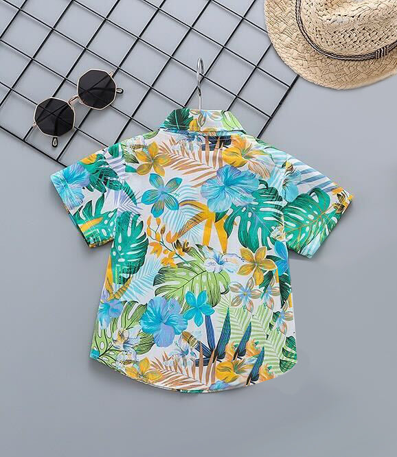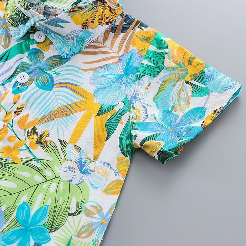 This Blue-Green Combination Tropical Hawaiian Flower Printed short-sleeve shirt is perfect for your little kids. Featuring a playful special All Seasons floral Print, it brings a touch of the tropics to any outfit. Made from soft and breathable cotton, this shirt is comfortable enough for all-day wear. It's easy to care for and machine washable, making it a great choice for busy parents.