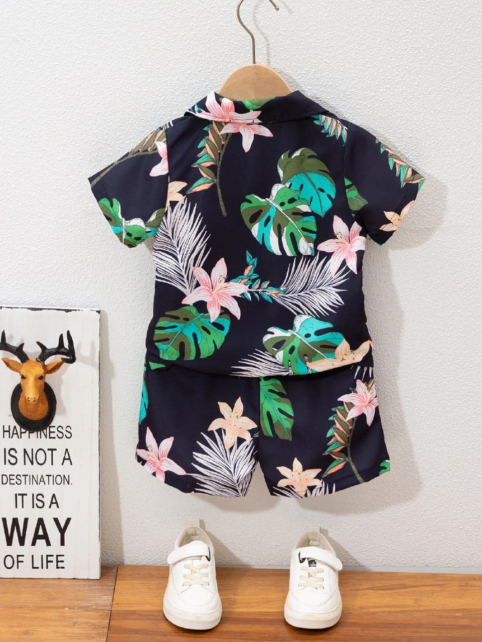 Baby Boys Black Tropical Leaf & Floral Co-ord Set – Summer Shirt & Shorts Trendy Outfit By Shinydots