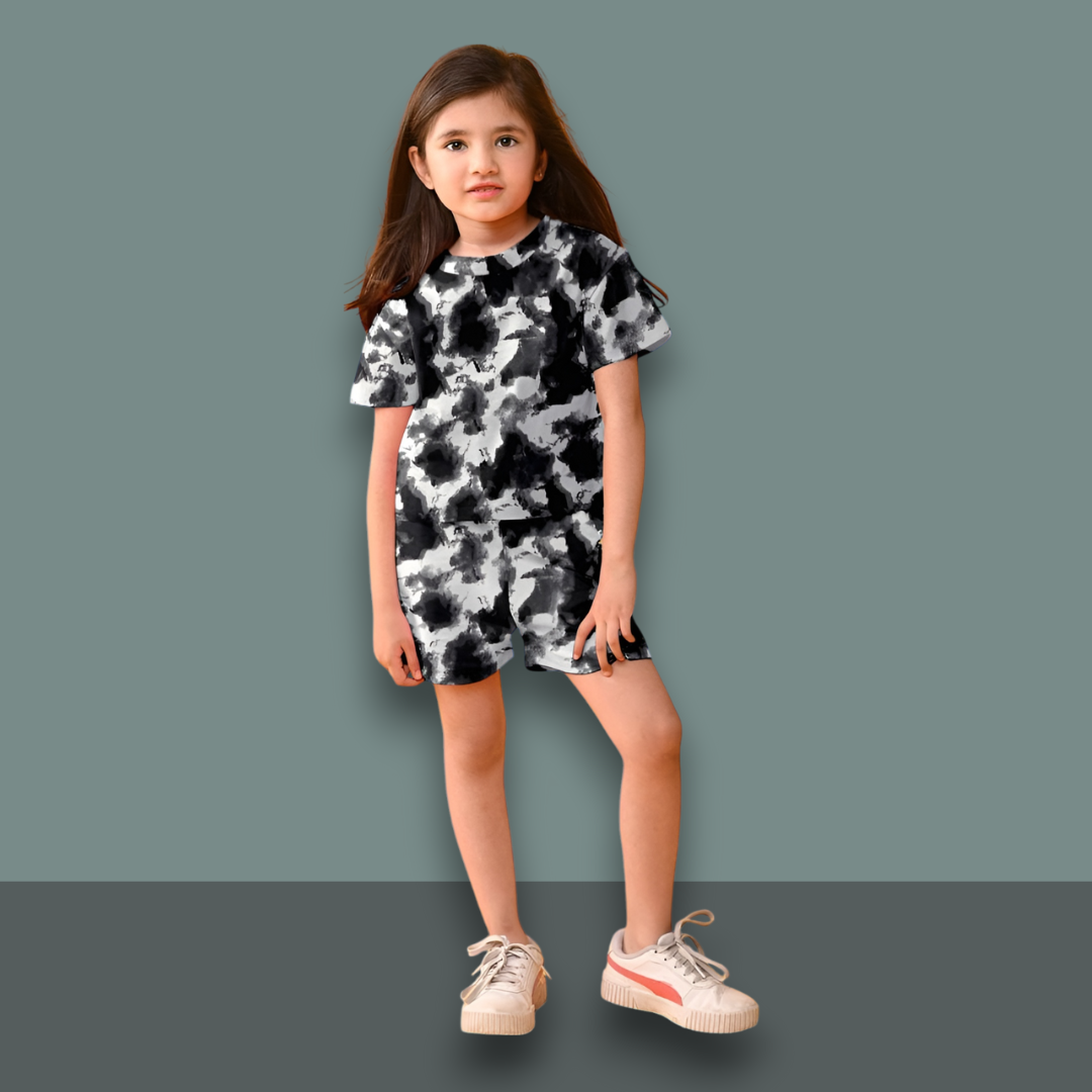 Let your little one shine in this trendy tie-dye T-shirt and shorts set! Perfect for fun summer days, this matching set brings comfort and style together. The soft, breathable Cotton fabric ensures your child stays cool and comfortable while the vibrant Black and White tie-dye pattern adds a playful, fashion-forward...