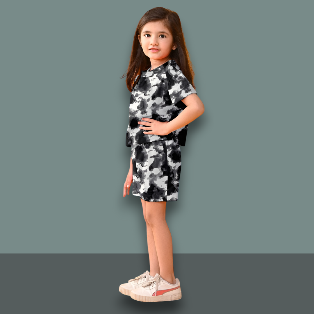 Girls' Tie-Dye Cotton Co-Ord Set - Black & White