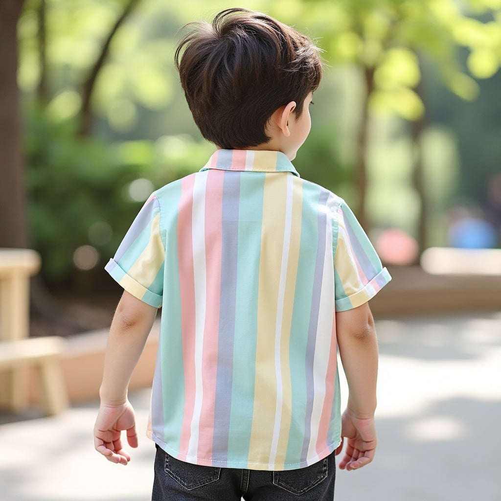 2. Pastel Multi-Color Striped Shirt – With soft tones of mint, peach, yellow, and lavender, this shirt is bright, cheerful, and made to stand out.