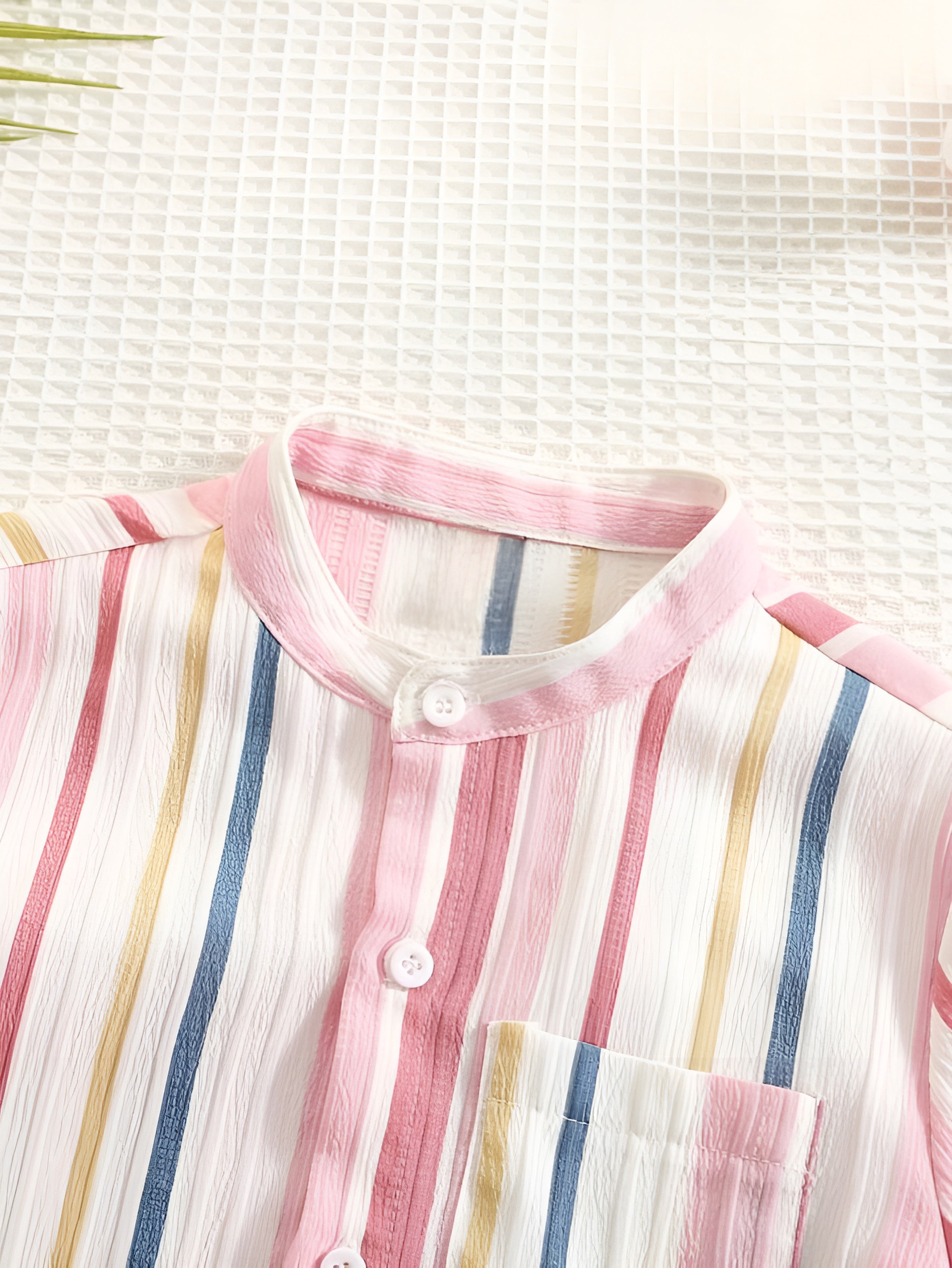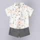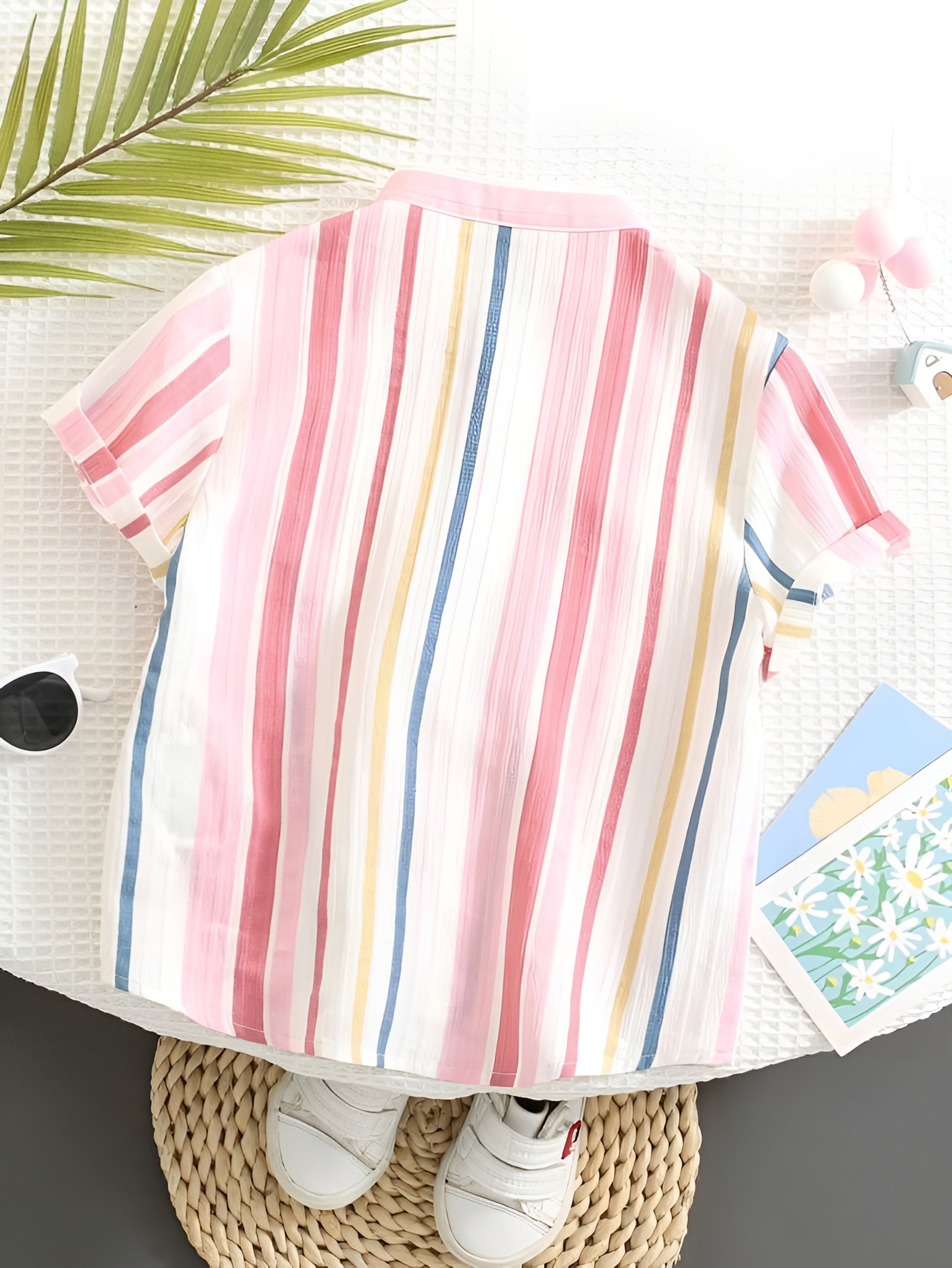 Shinydots Kids Boys Colorful Striped Short Sleeve Shirt With Grey Cotton Short Clothing Set