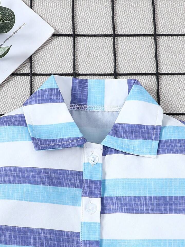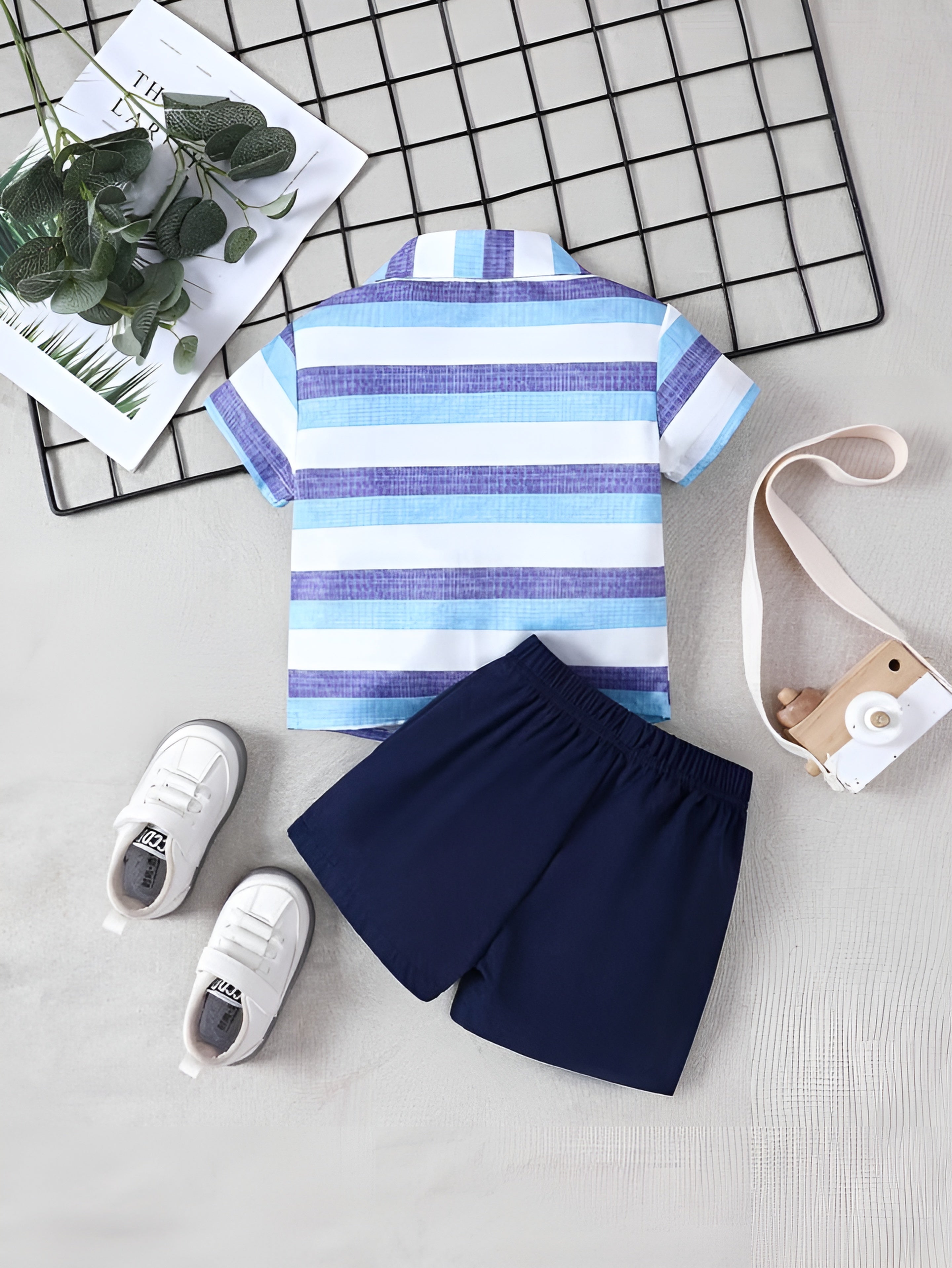 Shinydots Stylish Blue Striped Cotton Blend Shirt & Navy Shorts Set for Boys – Summer Casual Outfit