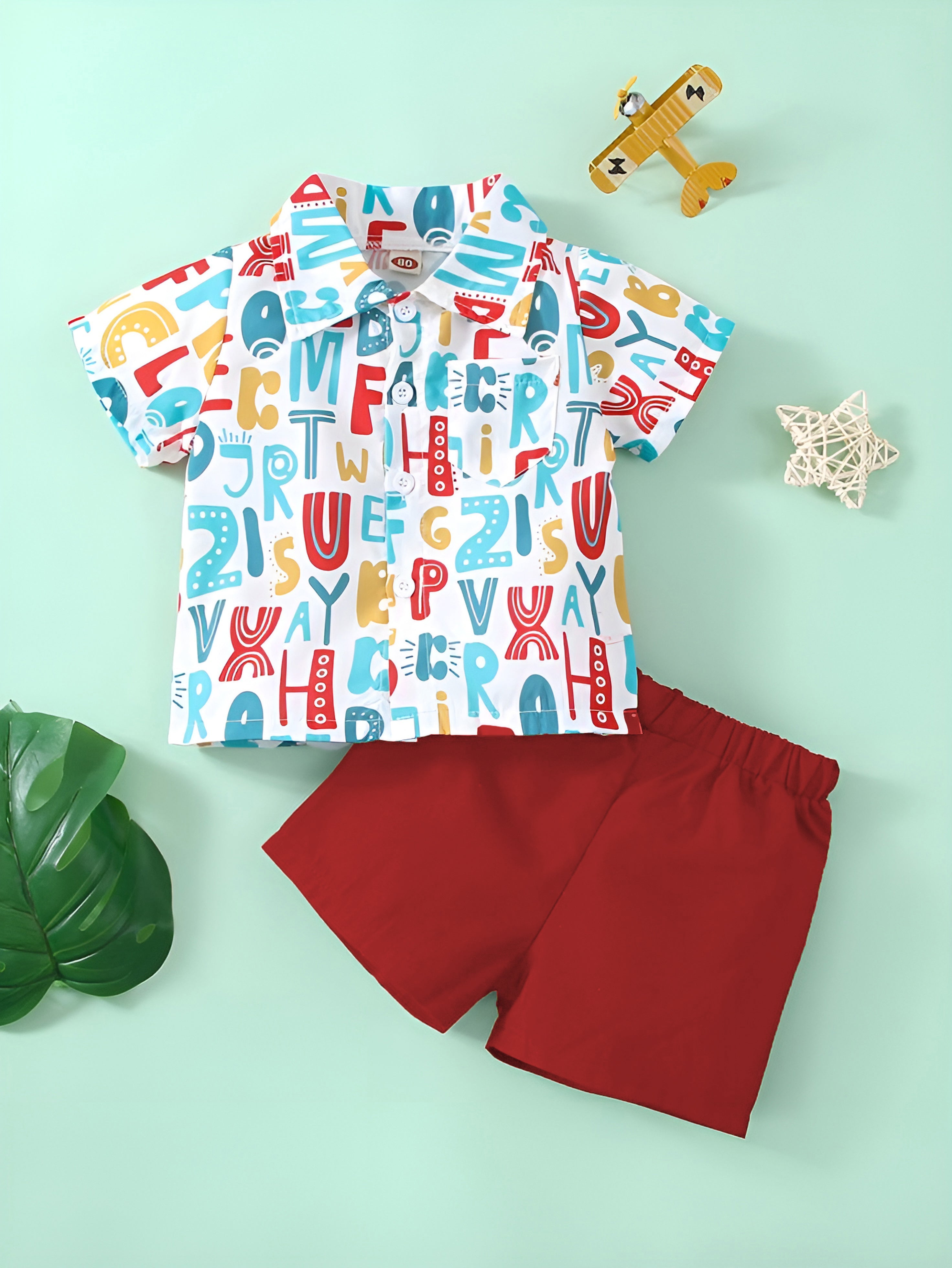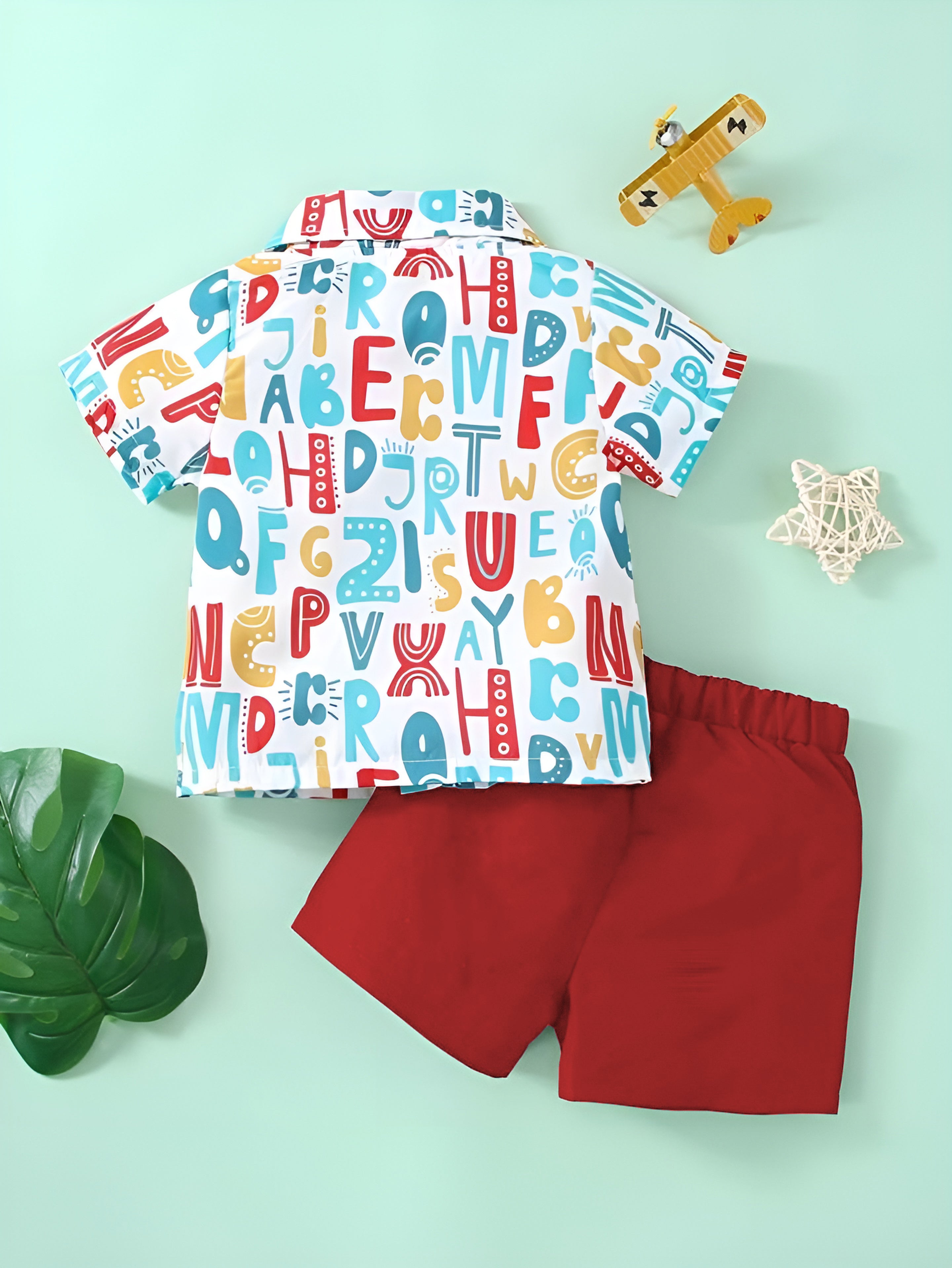 Make learning fun with this adorable alphabet print shirt and red shorts set! Featuring a playful mix of letters and numbers, this outfit is perfect for curious little minds. The lightweight and breathable fabric ensures comfort, making it an ideal choice for daily wear and special occasions. Two Piece Set...