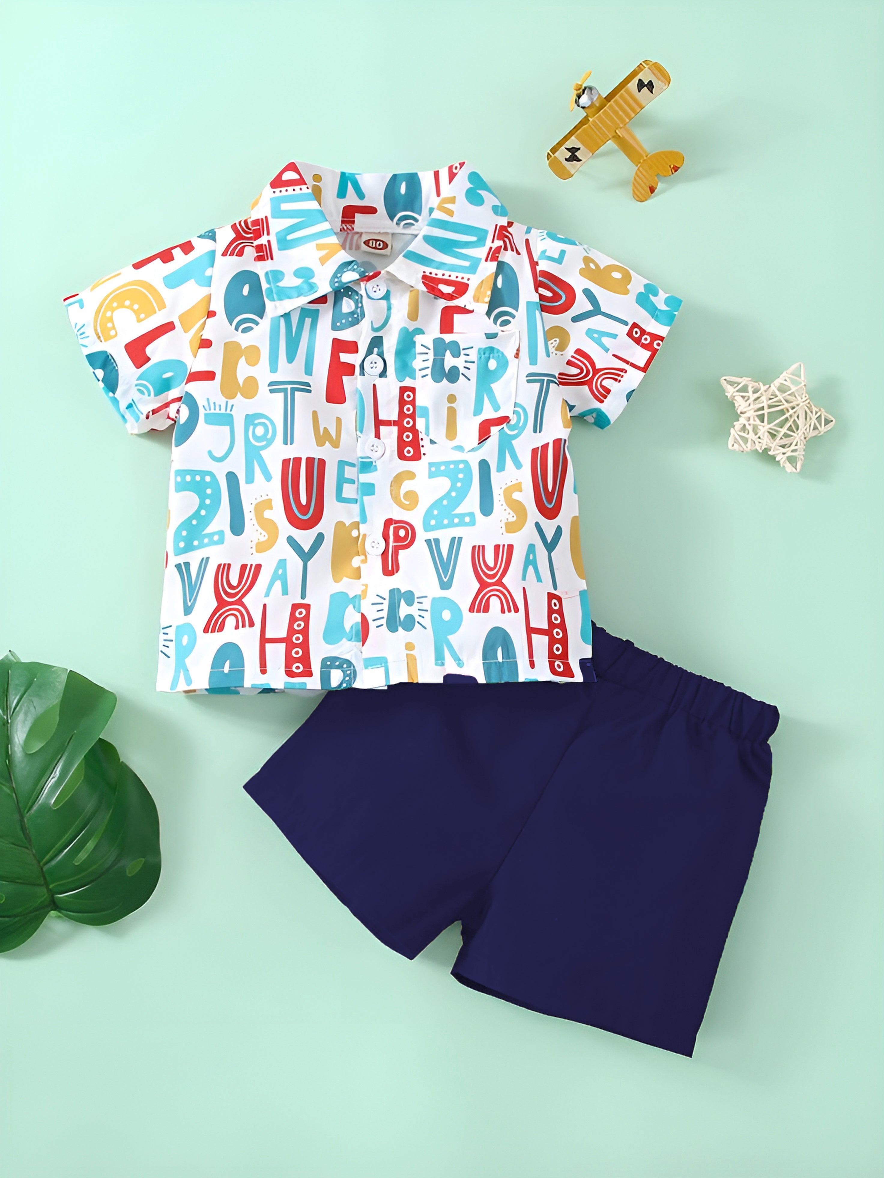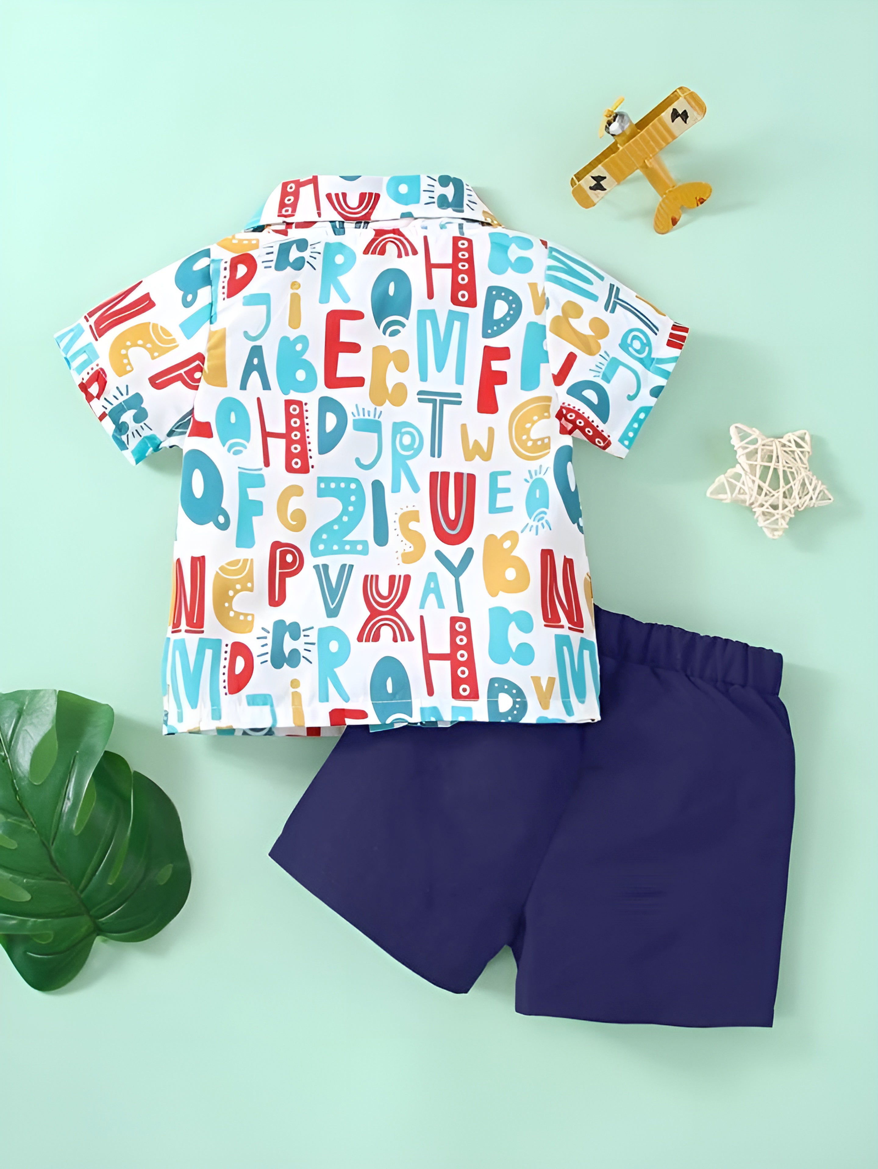 Shinydots Toddler Latter Graphics Shirt With Short Pair For Boys-2-Piece Clothing Set