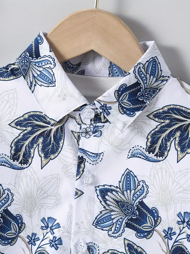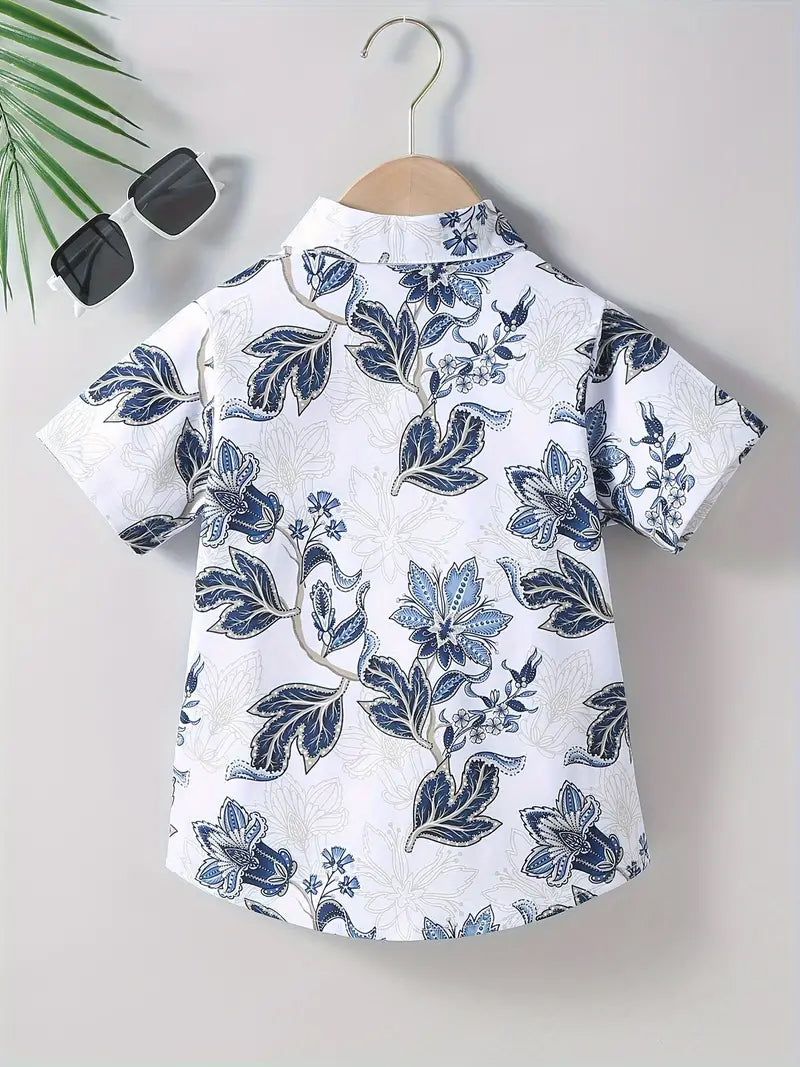 Give your little one a fresh and stylish look with this boys' white floral printed shirt! Designed with a beautiful blue and white botanical print, this short-sleeve button-down shirt is made from soft, breathable fabric, ensuring comfort all day long. Perfect for casual outings, beach vacations, and summer parties. Shop...