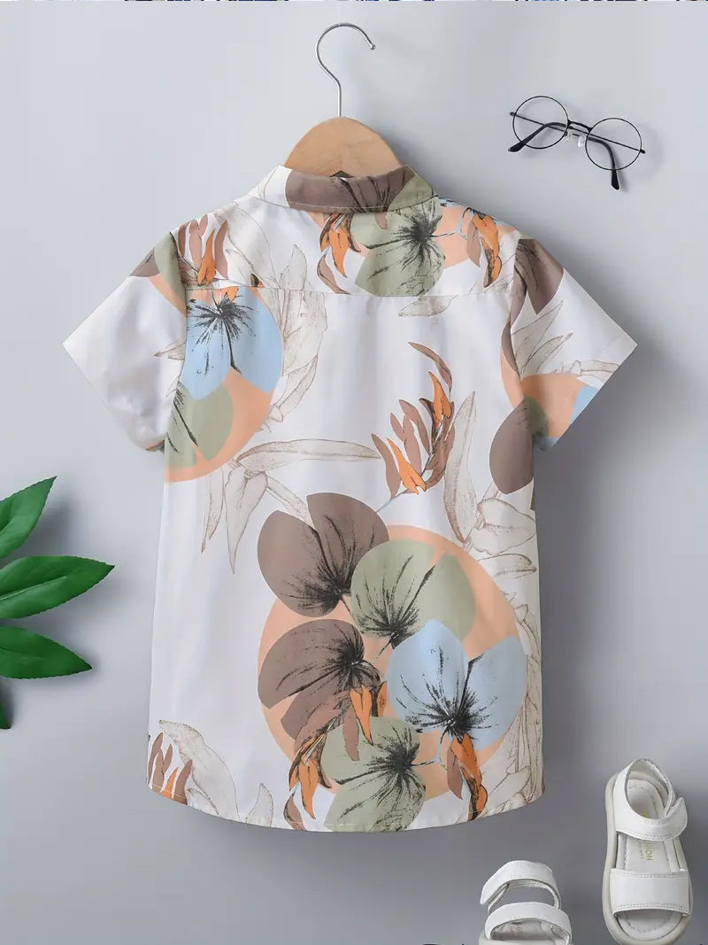Let your little one stay cool and stylish this summer with our Peach Floral Printed Short-Sleeve Shirt from ShinyDots. Designed for warm-weather comfort, this shirt is made from a soft, breathable cotton blend that keeps kids fresh all day long. The pastel peach tones with tropical floral prints add a refreshing summer touch, making it perfect for beach outings, vacations, picnics, and casual everyday wear. Featuring a relaxed fit, button-down closure, and lightweight fabric, this trendy shirt pairs effortlessly with shorts or jeans for a laid-back summer look.