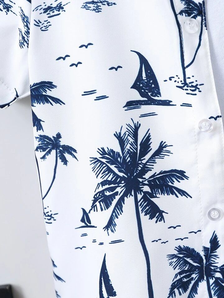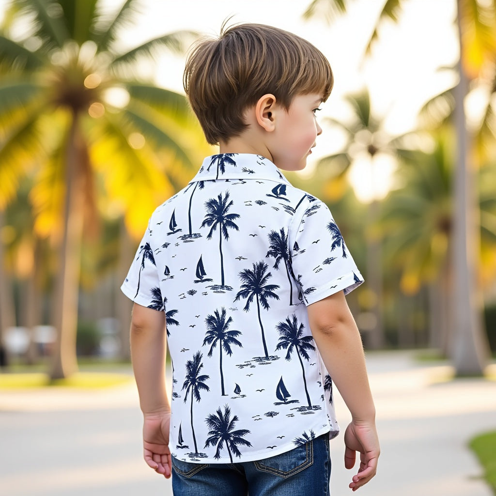 Tropical Palm Tree & Sailboat Print Kids' Shirt - Trendy Summer Wear for Boys | Shinydots